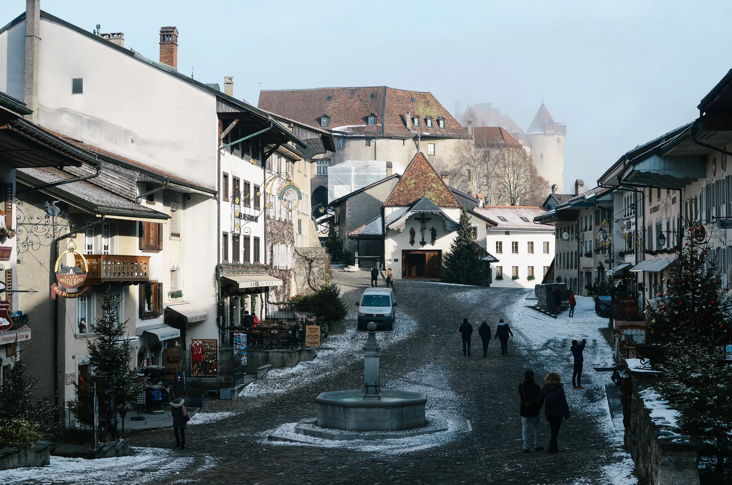 this medieval village gives its name of course to gruyère cheese and is located at the top of an 82 meter-high hill overlooking the saane valley & lake of gruyère. the village is CUTE and fun to walk around, pop into shops, eat fondue [reservations are helpful, sit upstairs!], and take a look around the gorgeous castle. you can also tour the cheese or chocolate factory, if you want to learn more about how it's all made. read more about the activities here or read our post about << 7 things to try when you visit switzerland >>